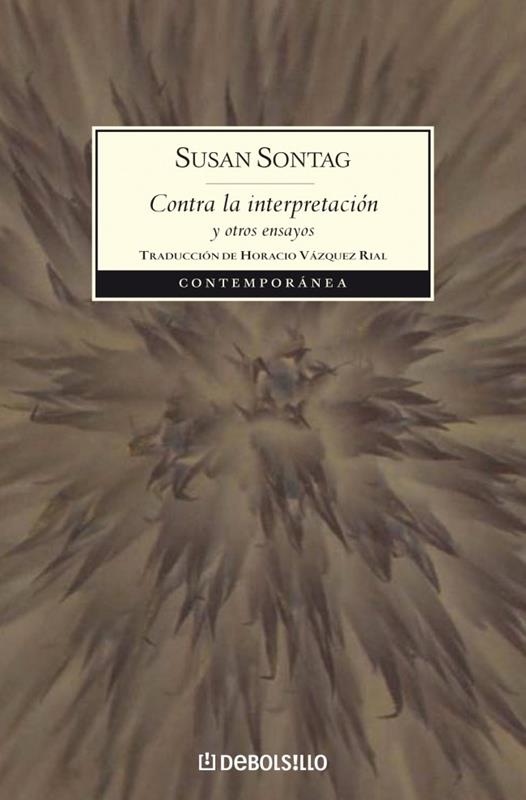 Publicado por primera vez en 1966, este celebrado libro de Susan Sontag, su primera colección de ensayos, se convirtió rápidamente en un clásico contemporáneo que ha tenido una gran influencia en el pensamiento sobre el arte y la cultura contemporáneos, no solo circunscrita a Estados Unidos. Además del ensayo que le da título y el famoso «Notas sobre lo camp», Contra la interpretación y otros ensayos incluye textos originales y provocativos sobre Sartre, Simone Weil, Godard, Beckett, la ciencia ficción, el cine, el psicoanálisis y el pensamiento religioso contemporáneo. «Los ensayos de Susan Sontag son grandes interpretaciones, incluso acontecimientos, sobre lo que está sucediendo realmente.» Carlos Fuentes