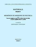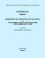 • OBRA DEL CANÇONER POPULAR DE CATALUNYA. VOLUM VII. MEMÒRIES DE MISSIONS DE RECER