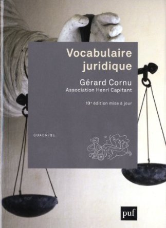 Définir, après les avoir identifiés, les termes juridiques de la langue française, tel est l'objet de ce Vocabulaire juridique. S'appuyant sur un premier travail réalisé par Henri Capitant en 1936, Gérard Cornu a développé « une oeuvre nouvelle par ses entrées, sa méthode, ses auteurs. L'éminente vocation du Vocabulaire juridique est de saisir, dans les définitions, les catégories du droit. »