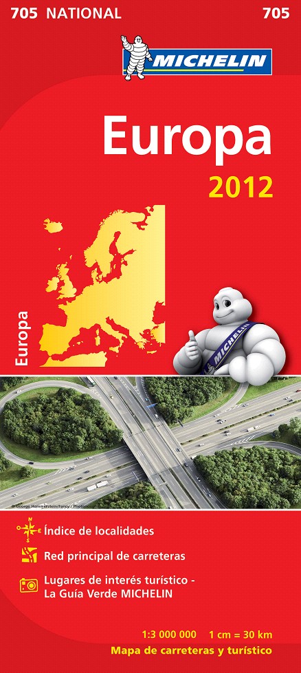 La edición actualizada del Mapa National Europa 2012, editado a escala 1/3 000 000, incorpora nuevos contenidos: un índice de localidades, red principal de carreteras, así como lugares e informaciones de interés turístico que han sido extraídos de La Guía Verde MICHELIN.