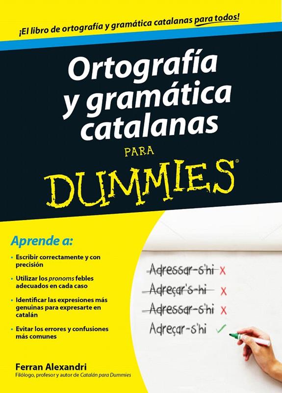 Si te desenvuelves con comodidad hablando en catalán, pero te sientes inseguro cuando tienes que escribirlo, este libro será tu mano derecha. En él se explica de forma muy sencilla y pedagógica las principales normas de escritura de este idioma. No, no pretendemos que te conviertas en un experto, solo queremos ayudarte para que puedas escribirlo correctamente, eligiendo las palabras y estructuras adecuadas y evitando los errores y barbarismos. • Ejercicios test de autoevaluación — al fi nal de cada capítulo encontrarás un ejercicio para que compruebes si has entendido bien la lección; las soluciones están en la ficha del libro en la página web www.paradummies.es • El todo y la parte — tanto si tienes una gran curiosidad y quieres leerlo entero, como si solo buscas respuesta a una duda puntual, puedes usar este libro como desees • Con ejemplos, todo es más claro — expresiones habituales (bueno, y algunas más cultas también) y comparaciones con el español y otros idiomas próximos, para que te sea mucho más sencillo recordarlo • Si necesitas una base más amplia — si precisas unos conocimientos previos de catalán, consigue un ejemplar de Catalán para Dummies, que se acompaña de unas pistas de audio a modo de ejemplos