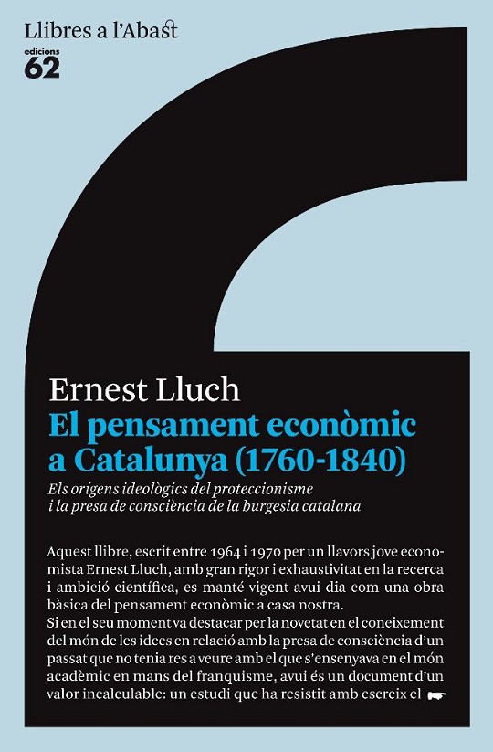 El pensament econòmic a Catalunya (1760-1840) és, amb tota seguretat, una obra bàsica sobre la història del pensament econòmic a Catalunya. Escrit l'any 1970 per un llavors jove economista Ernest Lluch, aquesta obra -resum de la seva tesi doctoral- es manté encara avui dia del tot vigent, pel seu rigor, exhaustivitat de la recerca i ambició científica que presenta. Si en el seu moment va destacar per la novetat en el coneixement del món de les idees en relació amb la presa de consciència d'un passat que no tenia res a veure amb allò que s'ensenyava en el món acadèmic sota les mans del franquisme, avui és un document d'un valor incalculable: un estudi que ha resistit amb escreix el pas del temps, perquè manté una connexió directa amb els problemes del país d'ahir i d'avui.Aquesta reedició es presenta amb dos textos introductoris que completen el text i ens permeten de vincular-lo més estretament amb el rol que va tenir Ernest Lluch en la política econòmica catalana: per un costat, l'acurada anàlisi del doctor Francesc Artal, un dels seus deixebles i membre del patronat de la Fundació Ernest Lluch, i per l'altre, el pòrtic del doctor Fabià Estapé, director de tesi d'Ernest Lluch.