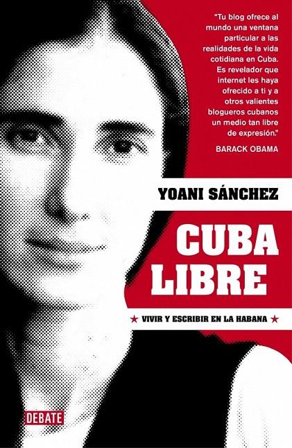 En Cuba es considerada la espina más aguda del régimen, para la revista Time es una de las cien personas más influyentes del mundo. Yoani Sánchez, la bloguera cubana, quizá la cronista más incisiva y relevante de nuestros días, nos ofrece una mirada de lo que es vivir en el régimen comunista: el hambre, la escasez de todo, el arte de vivir en un Estado ineficaz y represor, la lucha por descifrar las noticias tras las líneas del periódico del partido, la convivencia forzada con la propaganda, el pánico que producen las convocatorias de la policía, la preocupación por los amigos en la cárcel, la nostalgia por los numerosos fugitivos y la desilusión por todos aquellos que han dejado de creer en el futuro. Pero, sobre todo, el temor y la rabia por los sueños perdidos de quienes, como ella, han nacido en Cuba en los años setenta y ochenta y se encuentran encerrados en una utopía que no les pertenece. Cuba libre rescata el itinerario virtual de la bloguera de "Generación Y" a través del entramado de reveladores textos y fotos. Un libro imprescindible por cómo está escrito y por lo que deja ver de una vida que a la distancia podría despertar equívocos pero que es terrible. «He vivido fuera de mi país, pero he regresado porque he entendido que para mí la vida no está en otra parte, sino en otra Cuba.» Yoani Sánchez «Hay jóvenes cubanos enviados especialmente para realizar labor de zapa y prensa neocolonial de la antigua metrópoli española que los premia.» Fidel Castro (comentando las declaraciones de Yoani Sánchez en el prólogo del libro Fidel, Bolivia y algo más)