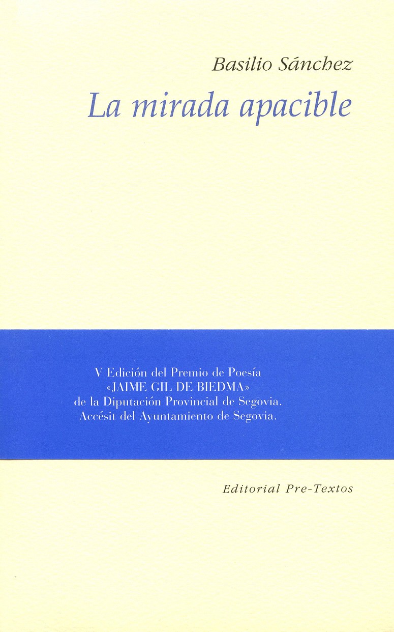 La mirada apacible fue accésit de la V Edición del Premio de Poesía Jaime Gil de Biedma de la Diputación Provincial de Segovia.