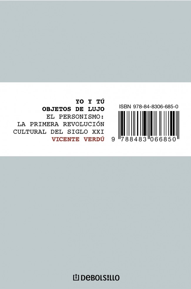 Vicente Verdú, uno de los analistas de los cambios sociales más prestigiosos del panorama intelectual español recorre en este libro la evolución y las alteraciones del comportamiento de la sociedad en este arranque del siglo XXI. Estamos, según todos los indicadores, ante un cambio de tendencias o de paradigma social. Desde el fin de la segunda guerra mundial hasta la caída del muro de Berlín imperó la aventura colectiva y revolucionaria que, tras su fracaso, derivó en un individualismo extremo. La insatisfacción provocada por la acumulación de bienes y el exagerado consumismo ha frustrado también este proyecto hiperindividualista produciéndose una mutación hacia ¿una suma de la individualidades? con la llegada de una nueva época presidida por la emotividad y la búsqueda de la nueva subjetividad. Una etapa que es, sobre todo, emocional, biológica, mediática. La enorme presencia de la mujer y de lo femenino en lo social -junto con otras actitudes- ha influido en este cambio de ambiente, reflejado también en la pintura, en la arquitectura, en la morfología de los coches, los muebles o en los electrodomésticos cotidianos, donde abundan cada vez más las formas orgánicas (cálidas y cercanas) y, en la ciencia, donde la biología y las tecnologías de la reproducción ocupan un lugar central de la investigación. Yo y tú, objetos de lujo, es el libro que revela esta mutación en marcha, describe el cambio de modo de vida y la apoya a partir de los múltiples indicios que desde diferentes campos del saber están anunciando este giro hacia un mundo más moral de lo que suele creerse y más, decididamente, interesado por lo humano de lo que propaga el entretenimiento oficial.