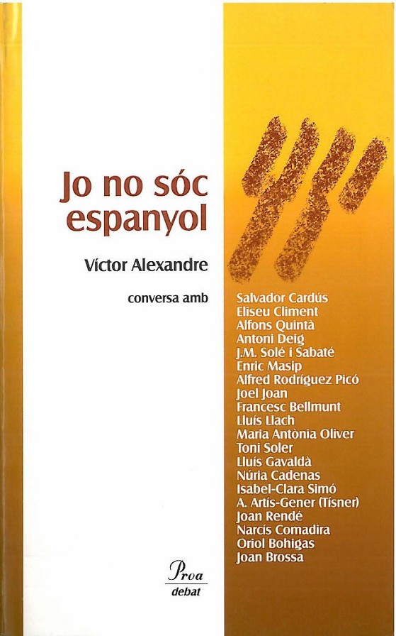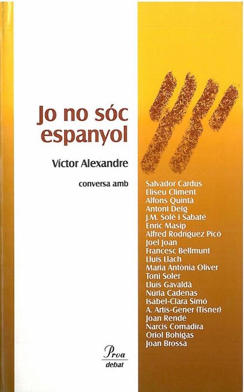 Una manera d'afirmar «qui som» és proclamar sense complexos «qui no som». Sota el títol Jo no sóc espanyol, Víctor Alexandre recull el fruit de vint converses sobre la identitat dels catalans. N'ha parlat amb diferents personatges de la televisió, la literatura, la música, el periodisme, la religió, l'esport... El resultat és un llibre àgil, contundent i d'una franquesa insòlita. Pel seu impacte en la societat catalana, hi ha un abans i un després de la seva publicació.