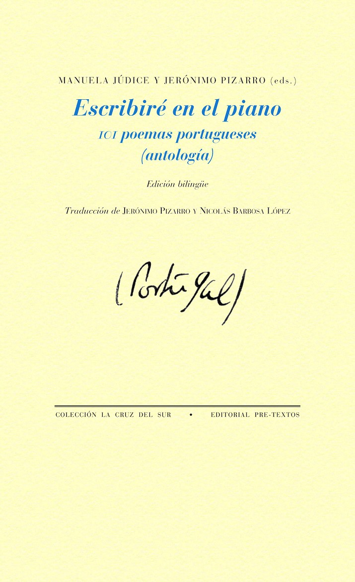 Esta selección de 101 poemas portugueses ha representado un paciente trabajo de traducción guiado por la música, pues la traducción de poesía de una lengua romance a otra permite «cantar» los poemas bajo un marco común. Fue este marco el que hizo posible resolver cuestiones de ritmo, tras las cuales la traducción pudo encauzarse en los demás aspectos de tipo sintáctico, léxico y estético. Bien se sabe que, al ser una de las formas de expresión más elaboradas y rigurosas, la poesía responde a fundamentos de tipo musical sobre los cuales discurren las palabras. No en vano el verso que titula esta antología apareja la escritura y la música: arroja luces sobre lo esencial tanto en la poesía como en la labor de traducción y destaca la importancia de llevar a cabo el ejercicio de la escritura en o sobre una base musical (ya sea un piano o un ritmo silábico).