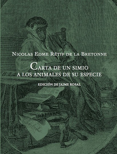 Carta de un simio a los animales de su especie es una curiosa muestra epistolar que Rétif incluye como apéndice al final de su Descubrimiento austral de un hombre volador o El Dédalo francés, novela muy filosófica, monumental libro de viajes fantásticos con ribetes utopistas y seudocientíficos aparecido en 1781 y que en su día suscitó no pocas controversias.