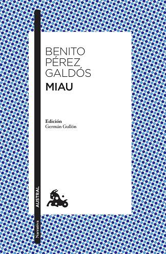 La gran maestría de Galdós en la descripción de las costumbres de la época y su facilidad para ahondar en las vicisitudes del alma humana tienen en Miau uno de sus mejores exponentes. En esta obra, el autor relata las distintas formas en que el individuo puede amoldarse o vivir en desajuste con las normas de la sociedad burguesa, a través del descenso a los infiernos del funcionario Ramón Villamil, despedido poco antes de poder disfrutar de su jubilación. Sin recursos económicos, sin apoyo del Estado y abandonado por todos, Galdós insinúa que la única posibilidad de salvación de su personaje está en sí mismo, en sus sentimientos y en su espiritualidad.