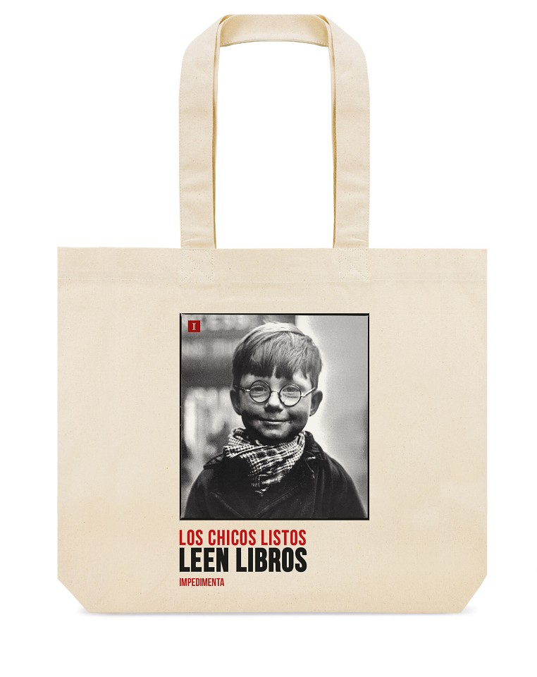 ¡Por fin llega la biblioteca portátil de Impedimenta! Una bolsa de tela hecha con algodón 100% ecólogico y a partir de un lema que corona todas las librerías de España: "Los chicos listos leen libros". Con una gran capacidad, en tu tote bag de Impedimenta podrás llevar todas tus lecturas, cuadernos, bolígrafos... y casi todo lo que puedas imaginar.